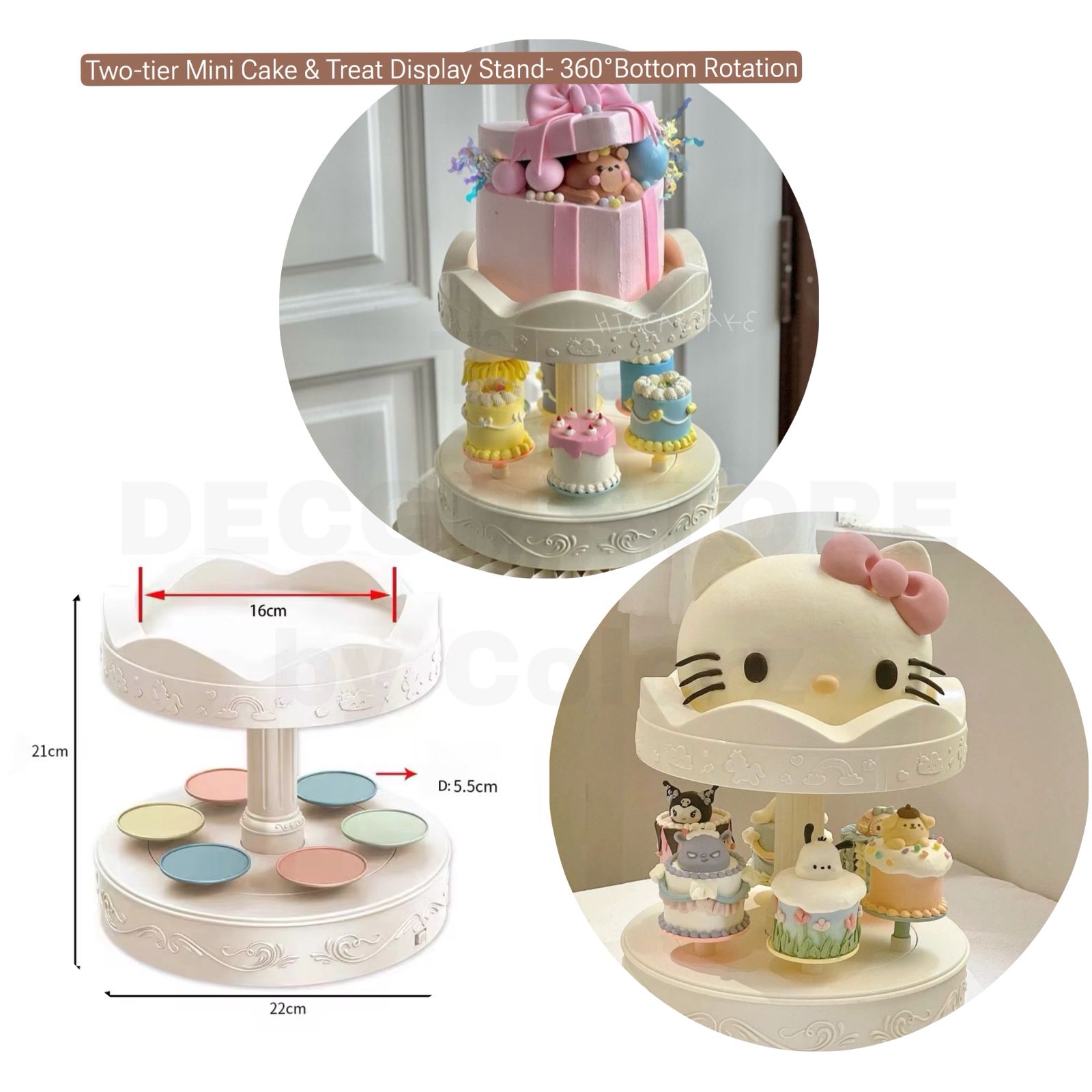 Electric 360° Rotating Two Tier Mini Cake & Treat Display Stand